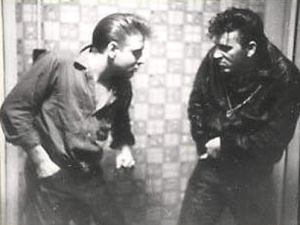 Tall Tale #2: Gene Vincent and Eddie Cochran were great pals, that much is certain. They met on tour and became fast friends, you could figure they had much in common. The backstory was already written. They ran wild. It was said that the both of them carried pistols everywhere they went, and would sometimes stand on either end of long hotel room hallways and quick draw their guns at each other, High Noon style. Minus the trigger action, of course. Eddie always won. Luckily they never got so blown out that they shot anybody. That we know of, anyway. Gene later said “We were as close as two guys can get without being queer.”