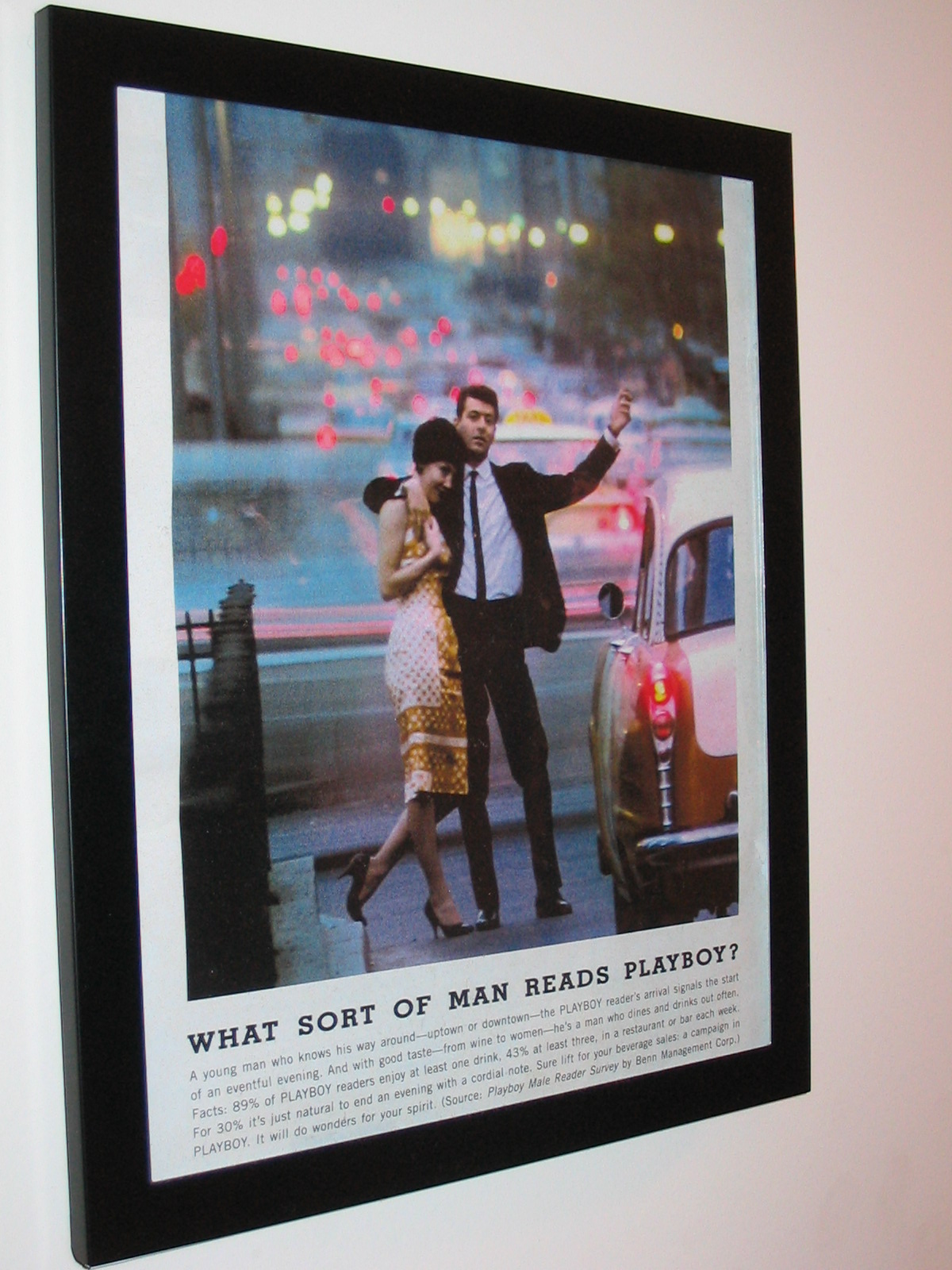 Thanks for republishing that “What Kind Of Man Reads Playboy?” ad. It looks very nice framed on my wall. I’ve gone to bat for the cultural value of Playboy many times. The picture of this swinging cat and lady in tow sums it up: It’s for the distinguished gentleman.